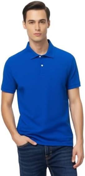 AJYAL - قميص بولو كلاسيكي بأكمام قصيرة للرجال من اجيال، لون أزرق رويال