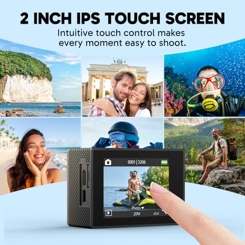AKASO - كاميرا أكشن اي كيه 7000 برو 4 من أكاسو مع شاشة تعمل باللمس بزاوية رؤية قابلة للتعديل 40 متر مقاومة للماء جهاز تحكم عن بعد ومجموعة ملحقات خوذة أسود
