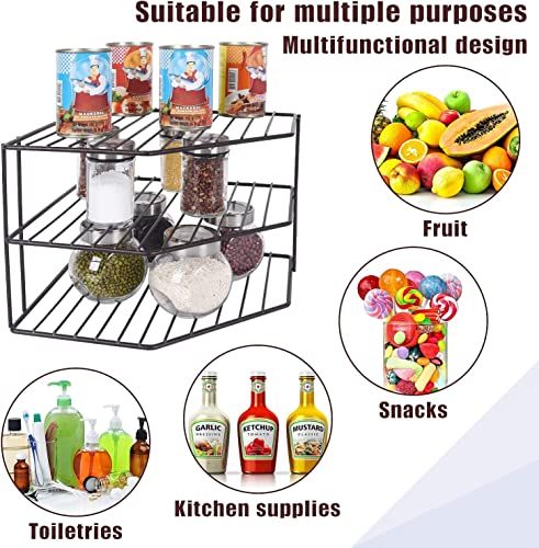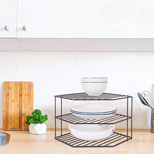 AKAZA - رف زاوية من 3 طبقات ومنظم للخزانة - تخزين ارفف منضدة المطبخ ورف الخزانة منظم للمطبخ والثلاجة وخزانة الحمام اسود سبيكة صلب ملمع