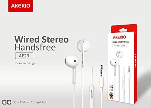 Generic - سماعة اذن مع ميكروفون لاجهزة ايفون والاندرويد وجميع انواع الموبايلات من اكيكيو- AE23، في الاذن، لاسلكي، أبيض