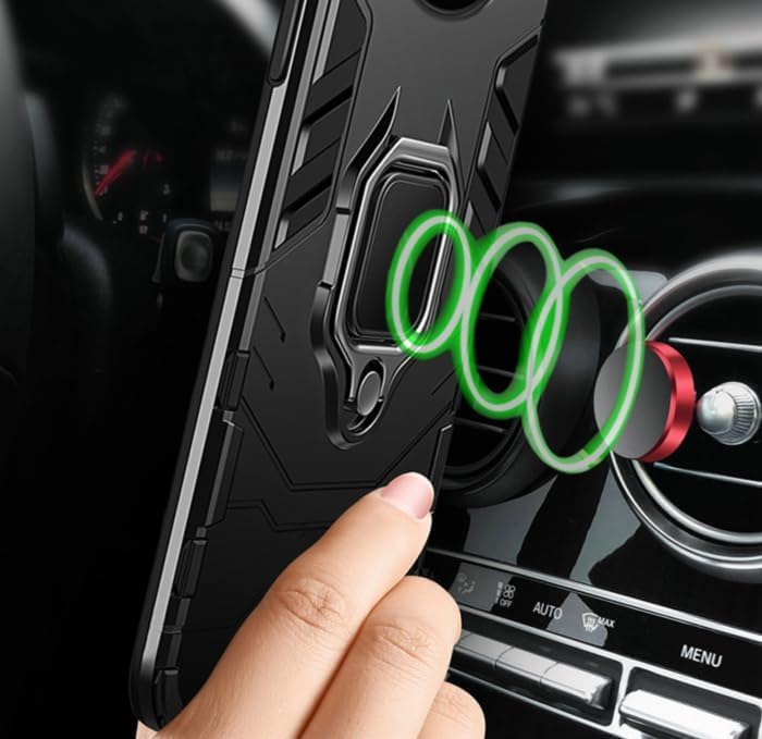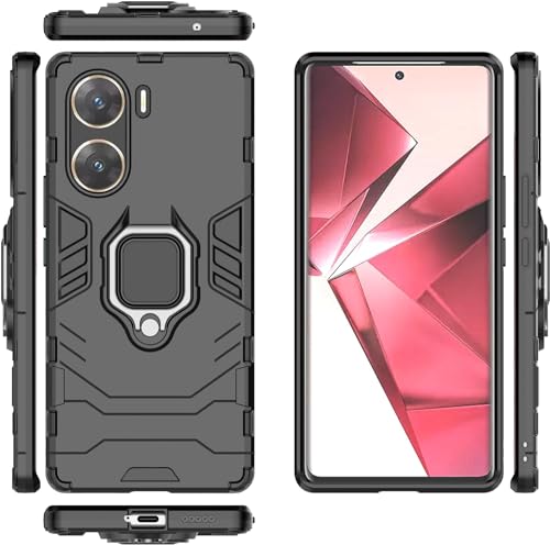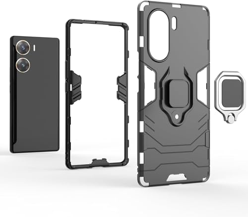 Generic - جراب حماية خلفي من اكيرا متوافق مع فيفو V29E شبكة الجيل الخامس 5G صلب مزدوج الطبقات مضاد للصدمات مسند حلقي دوار 360 درجة وحامل مغناطيسي للسيارة لون أسود