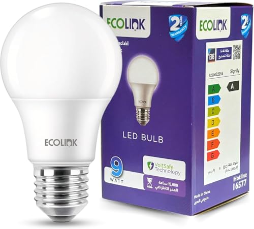 Generic - لمبة ليد E27من اكو لينك، (ابيض، 6500 كلفن، 9 واط، 950 لومن) ضمان عام