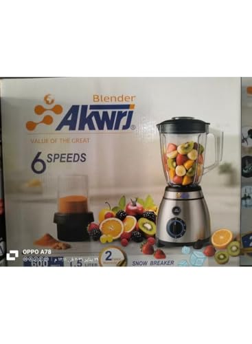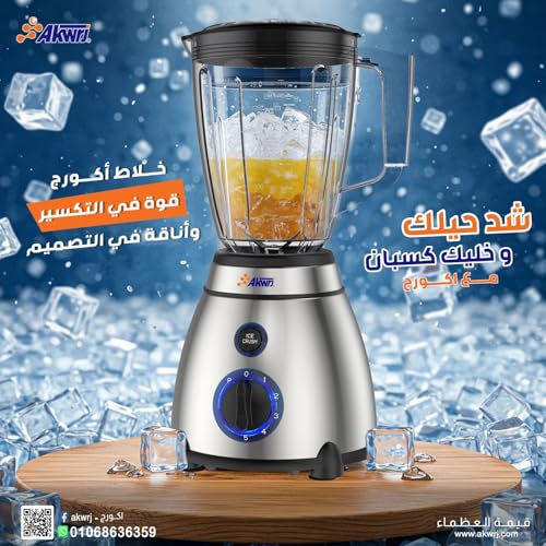 Akwrj - خلاط كهربائي أكورج مع 2 مطحنة بقوة 600 وات وبسعة 1.5 لتر ، 6 سرعات مع خاصية تكسير الثلج 2410002