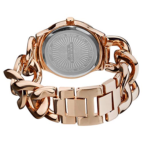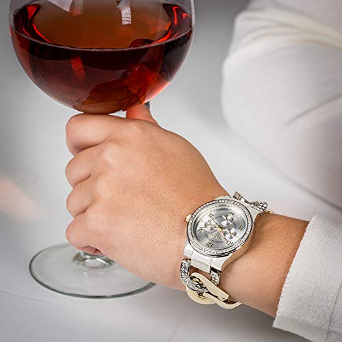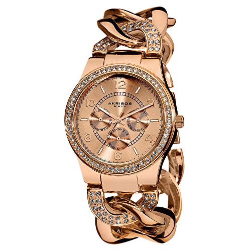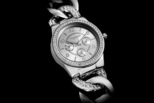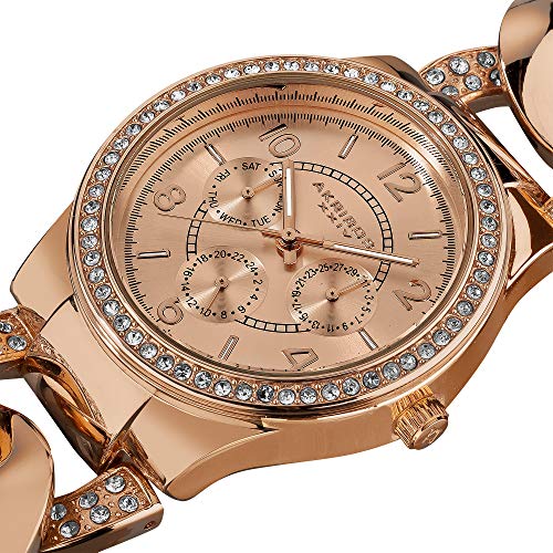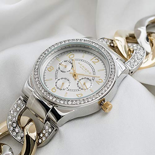 Akribos XXIV - ساعة كريستال متعددة الوظائف للنساء مزينة بسوار سلسلة ملتوية - كريستالات اصلية على الحافة والسوار - 3 عقارب فرعية لليوم والتاريخ وتوقيت جرينتش - AK558 من اكريبوس XXIV