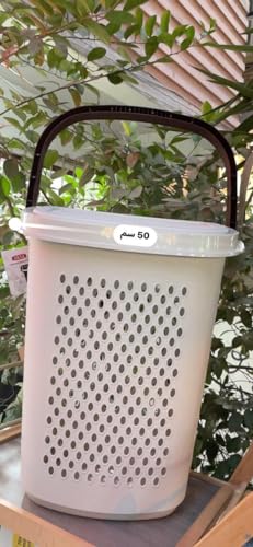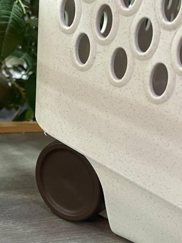 Generic - سلة غسيل بلاستيكية بمقبض وعجلة من اكسا، 60 50 سم - ابيض بمقبض بني