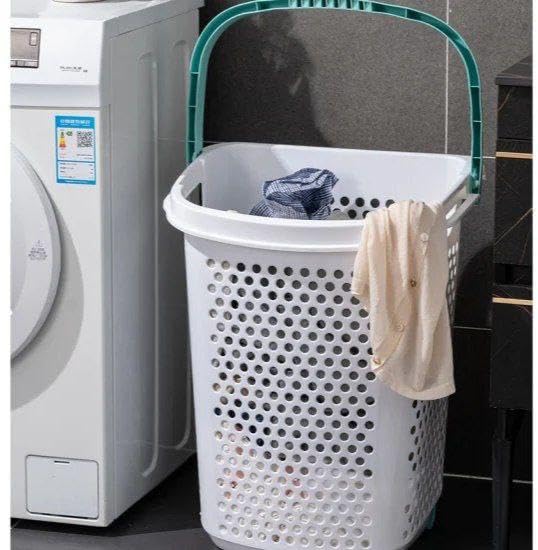 - سلة غسيل بلاستيكية بمقبض وعجلة من اكسا.