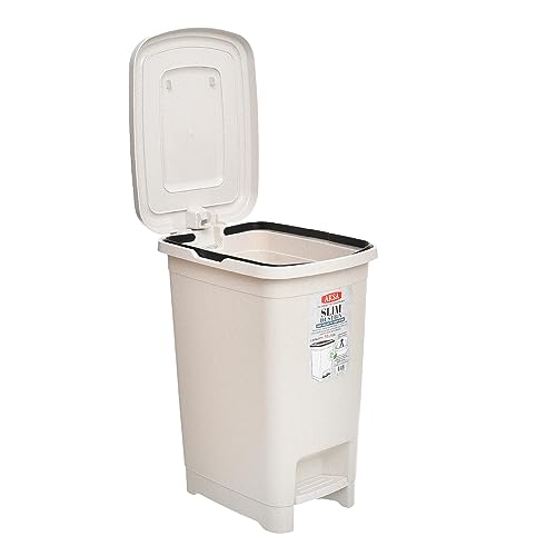 Aksa - سلة مهملات بلاستيك رفيعة بسعة 10 لتر من اكسا - لون بيج منقط يُفتح أعلى
