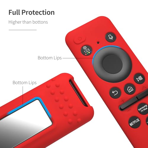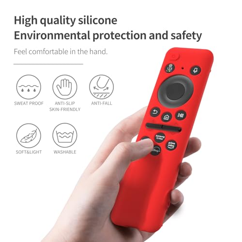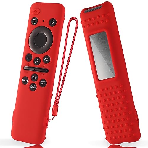 AKSHFETH - جراب سيليكون لجهاز التحكم عن بعد لتلفزيون سامسونج الذكي 2023 8K نيو QLED بتقنية المدى الديناميكي العالي HDR 2023 موديل BN59-01432a BN59-01432J الذي يعمل بالطاقة الشمسية (أحمر)
