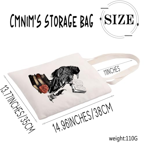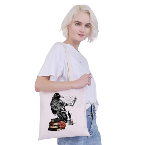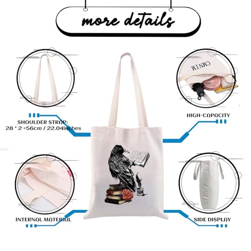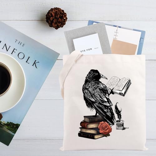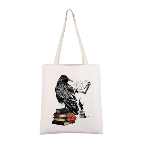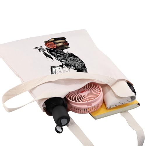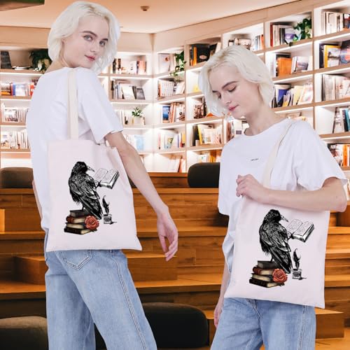 AKTAP - اكتاب شنطة يد كبيرة توت بتصميم غراب قوطي من رافين للقراءة للكتب، هدية لمحبي الكتب الادبية والادبية، هدية لطيور سوداء