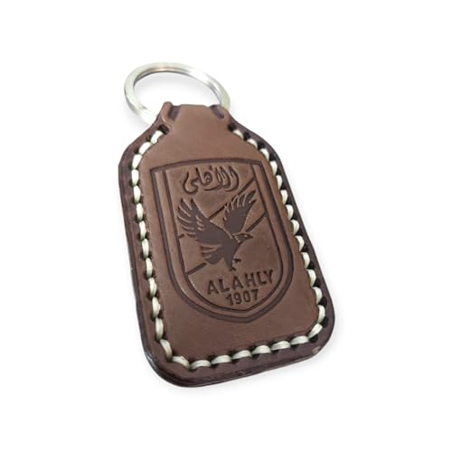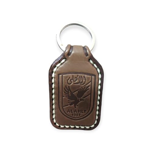 Generic - سلسلة مفاتيح جلدية للنادي الاهلي، بني مع شعار النادي المنقوش، اصدار 1907