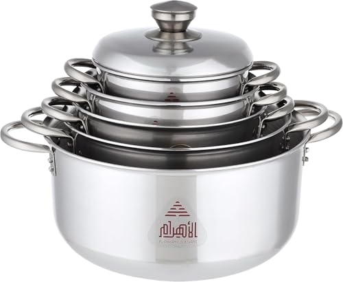 AlAhram - حلة ستانلس ستيل كلاسيك بمقبض وغطاء الومنيوم من بيراميد، طقم 10 قطع مقاس (16+18+20+24+28)