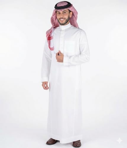 Generic - ثوب صيفي فاخر مع اساور اكمام سادة بازرار للرجال من الدفح، لون ابيض، مقاس 58 (XL)، طراز C