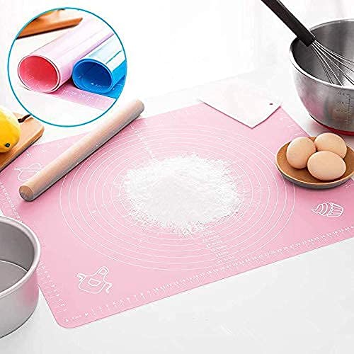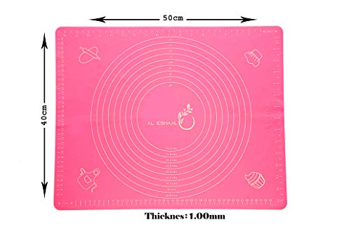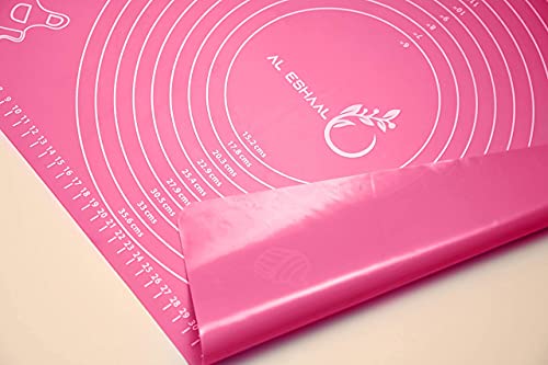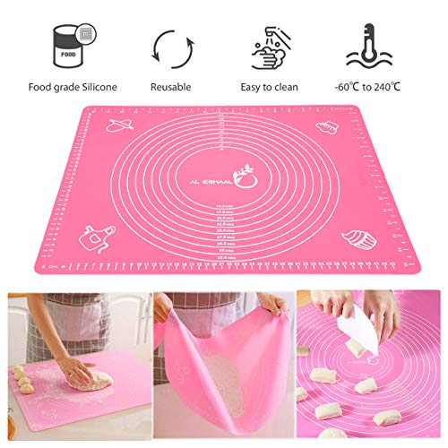 Spaceshoop - حصيرة خبز كبيرة من السيليكون من الاشعل (40 × 50 × 0.1 سم) لفرد عجينة المعجنات والفوندان مع مكشطة عجين وشنطة تخزين ومقاومة للحرارة وغير لاصقة وغير قابلة للانزلاق (بينك)