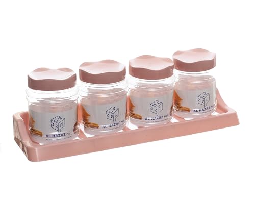 AL HAZAZ, - طقم برطمانات توابل بلاستيكية من الحزاز مكون من 4 قطع مع حامل دوار وأغطية مزودة بمصفاة، منظمات توابل مطبخ ممتازة محكمة الإغلاق لتخزين التوابل على سطح الطاولة - كاشمير