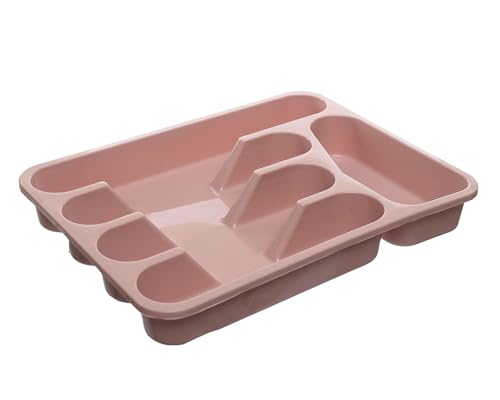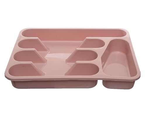 AL HAZAZ, - صينية تنظيم أدوات تناول الطعام البلاستيكية، مقسم أدراج للمعالق والشوك والسكاكين لتخزين المطبخ من الهزاز، بني (cashmere)