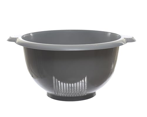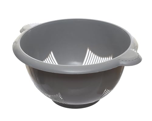AL HAZAZ, - مصفاة يد بلاستيكية متوسطة ممتازة من الهازاز للمطبخ بمقبض مريح للأرز والكينوا والتوت، رمادي