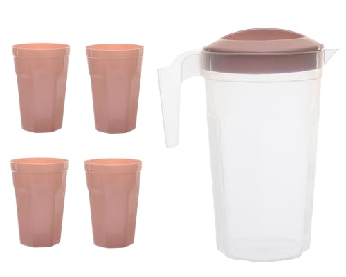 AL HAZAZ, - طقم إبريق ماء زمزم بلاستيك مع 3 أكواب مطابقة وكوب تقديم للمنزل والضيوف من الهزاز، سعة 1.8 ل، لون كشمير