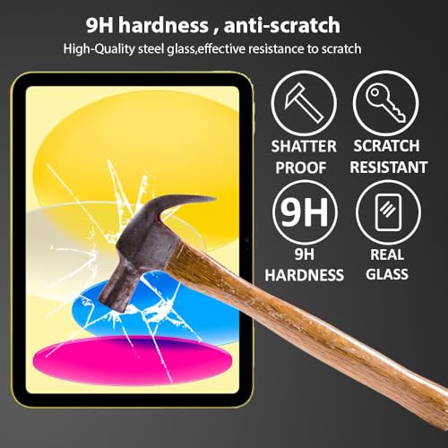 Al-HuTrusHi - شاشة حماية من الزجاج المقوى بتصميم سهل التركيب بتغطية كاملة HD عالية الدقة بدرجة صلابة 9 من الهوتروشي، متوافقة مع آبل ايباد الجيل العاشر 2022 [A2757]