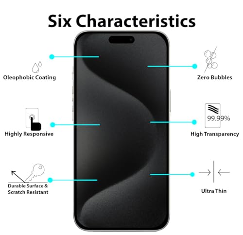 Al-HuTrusHi - الهوترسهاي واقي شاشة متوافق مع ايفون 15 برو ماكس 5G، واقي شاشة من الزجاج المقوى للخصوصية، [خالي من الفقاعات] [مضاد للتوهج] [تغطية كاملة HD] [سهل التركيب] [مقاوم للخدش]