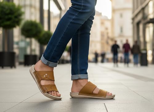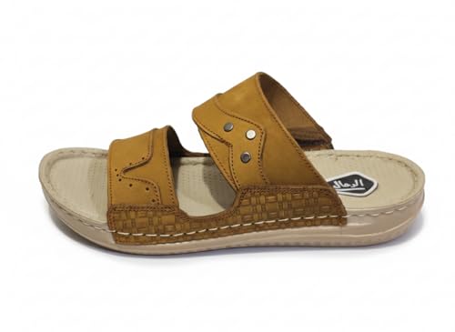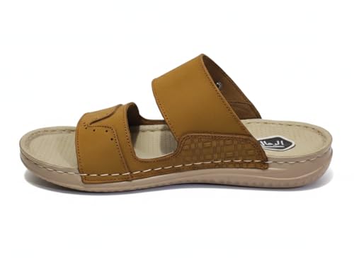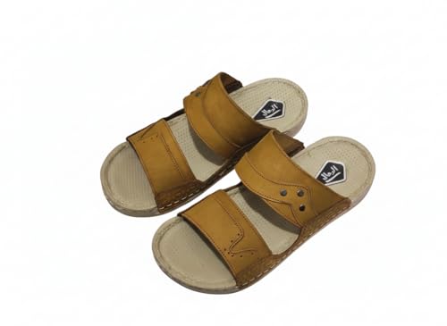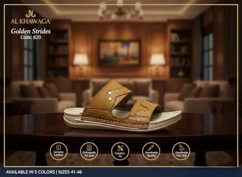 AL KHAWAGA - شبشب رجالي جلد طبيعي AL KHAWAGA موديل Golden Strides | نعل بوليتان (PU) طبي مريح كود 820 | سليبر كاجوال مرن مقاسات 41-46 | جودة الخواجة الأصلية