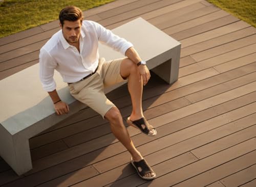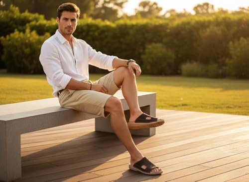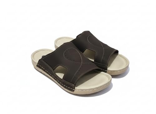 AL KHAWAGA - شبشب رجالي جلد طبيعي AL KHAWAGA موديل Elite Step | نعل بوليتان (PU) طبي مريح كود 910 | سليبر كلاسيك فخم مقاس 41-46 | جودة الخواجة الأصلية