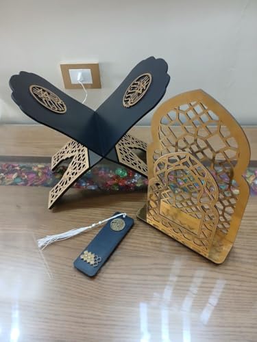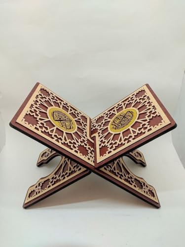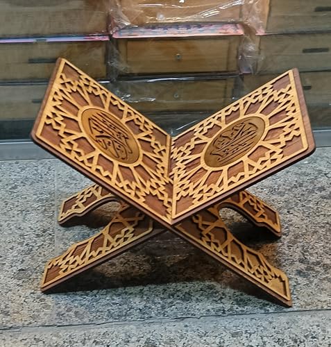 - سطح عريض ومرتفع يحمل الأحجام الكبيرة: تم تصميم سطح الحامل ليكون واسعًا بما يكفي لدعم المصاحف ذات الحجم الكبير أو المجلدات الدينية الثقيلة، مع توفير مساحة كافية بين الحامل والسطح لمنع تلوث المصحف.