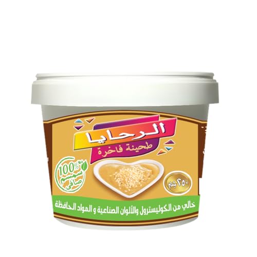 - { ملمس مثالي ومذاق أصلي} : طحينة فاخرة مصنوعة من أجود بذور السمسم، للحصول على نكهة عميقة وغنية وقوام كريمي ناعم. طحينة الرحايا هي الخيار الأمثل لأي شخص يبحث عن النقاء والجودة العالية والمذاق الأصلي.