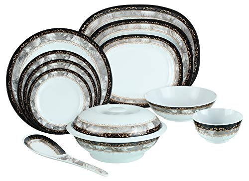 Al Sharif - طقم سفرة ميلامين مستدير منقوش من الشريف، 38 قطعة - متعدد الالوان بلاك راشا