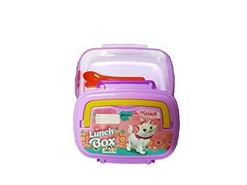 Alalyaa - حافظ طعام لانش بوكس به يد للحمل و شوكة معلقة - بنفسجي