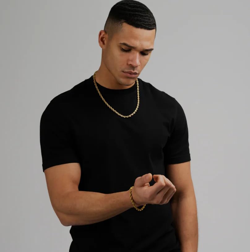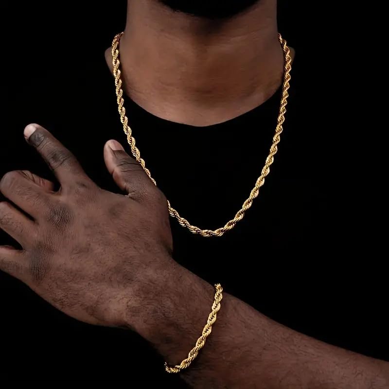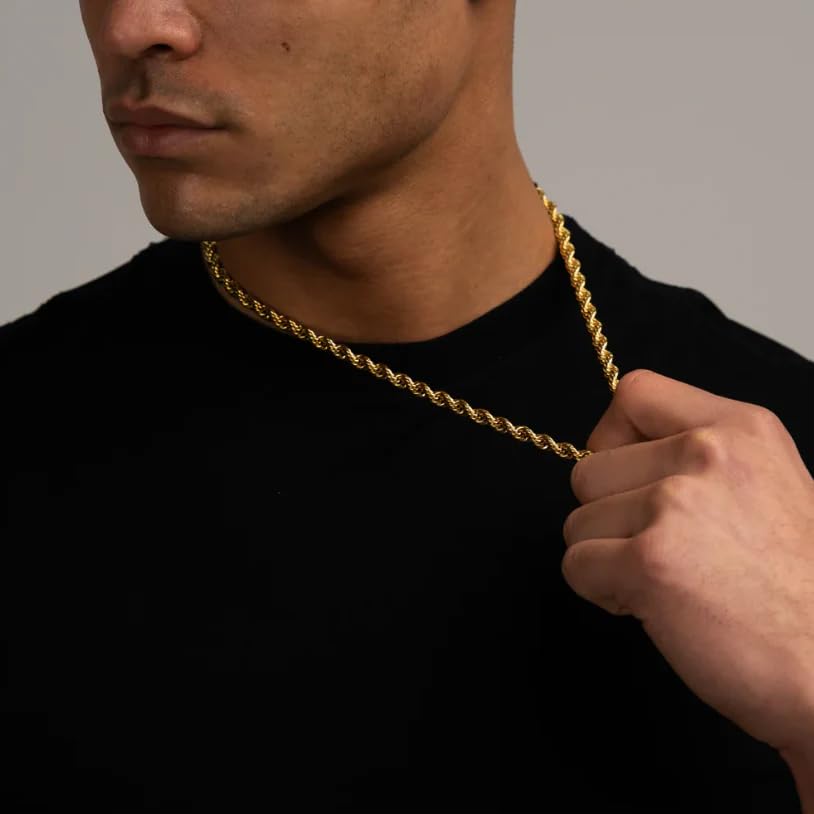 ALANETA - عقد كوردون بطول 60 سم للرجال من الانيتا، مطلي بالذهب عيار 18 قيراط، سلسلة مصنوعة يدويا لمجوهرات للرجال (لون ذهبي، سمك 5 ملم)