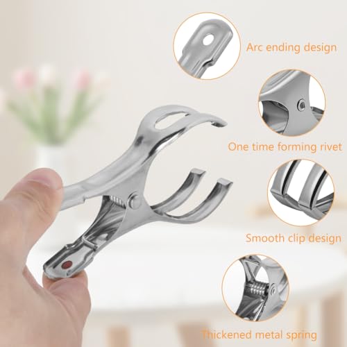 - متعددة الأغراض: مشابك فوط الشاطئ المصنوعة من الفولاذ المقاوم للصدأ ليست رائعة فقط لتثبيت الفوط على كراسي الشاطئ أو كراسي التشمس أو كراسي حمام السباحة، ولكن يمكن استخدامها أيضًا لتثبيت اللحاف أو الملايات أو الستائر أو الملابس أو الشرابات أو غيرها من العناصر الصغيرة لمنعها من التطاير في الأيام العاصفة.
