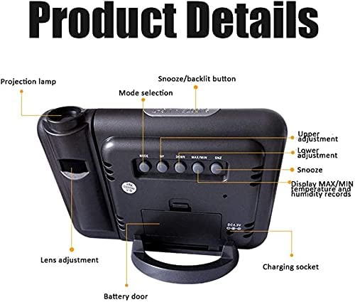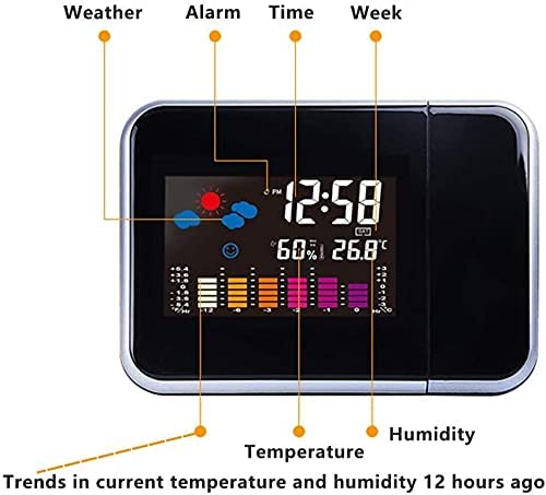 Generic - ساعة مع بروجيكتر : وتعرض ايضاَ درجة الحرارة والتاريخ والطقس، أكريلونيتريل بوتادين ستايرين (ABS)، رقمي، أسود، من أخرى