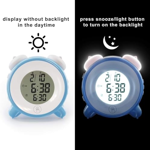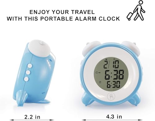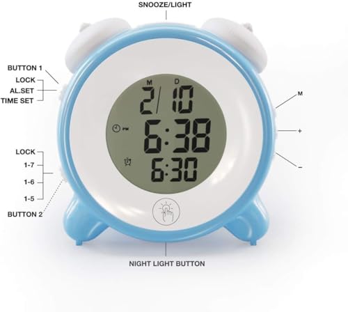 - ضوء ليلي بأربعة ألوان أحمر وأزرق وأبيض وأخضر، المس الزر لإيقاظ الضوء. اضغط على الزر، اضبط الوقت وساعة المنبه بزر واحد. يتيح لك الضوء الليلي الناعم والإضاءة الخلفية رؤية الشاشة في الظلام. يمكن للساعة المنبه ضبط المنبه في 3 أوضاع، من الاثنين إلى الجمعة، السبت - الأحد، الاثنين - الأحد. ساعة منبه صغيرة لطيفة للأطفال. ساعة المنبه هي الحل الأفضل لمن ينامون بشدة.