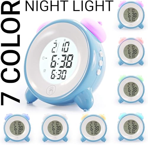 Generic - ساعة منبه للاطفال باضاءة ليلية بـ7 الوان - ضوء ليلي