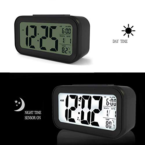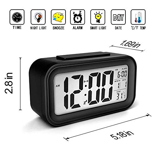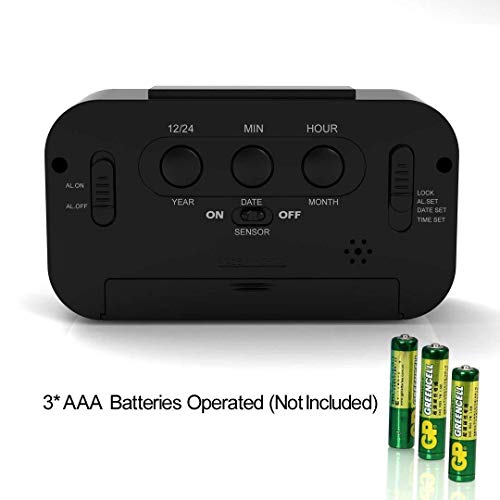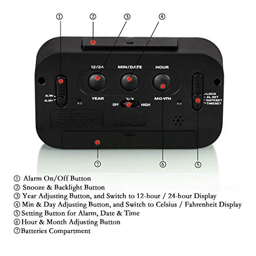 Atree - ساعة منبه بشاشة LCD كبيرة باضاءة خلفية ذكية مع تعتيم كساعة مكتب للمنزل والمكتب وساعة تنبيه ومنبه رقمي للسفر، بلاستيك، من اتري، أحمر
