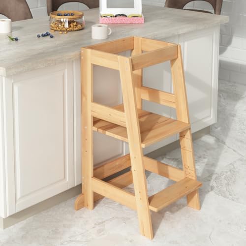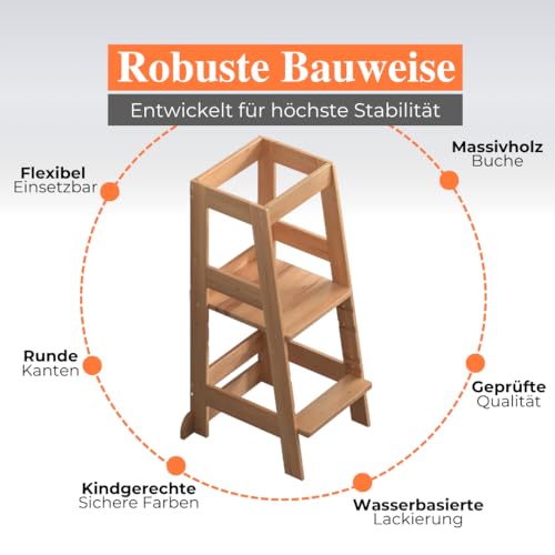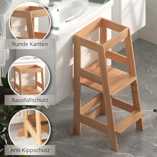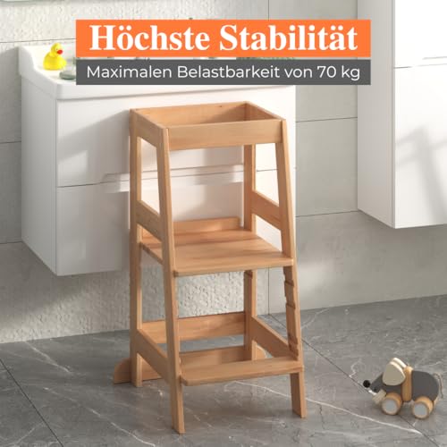 ALAVYA HOME - مقعد مطبخ نيو بتصميم برج مونتيسوري لتعلم الجلوس للأطفال من عمر سنة واحدة من الافيا هوم® بحماية من الميل مصنوع من خشب الزان بأقصى وزن 70 كجم قابل لتعديل الارتفاع بـ 3 مستويات