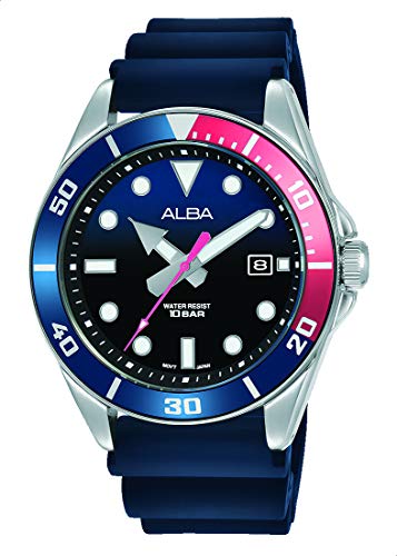 Alba - ساعة سيليكون مقاومة للماء دائرية انالوج بعقارب للرجال اكتيف من البا AG8K21X - كحلي