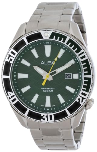 Alba - ساعة يد انالوج من الستانلس ستيل دائرية مقاومة للماء للرجال من البا اكتيف AG8K25X - فضي