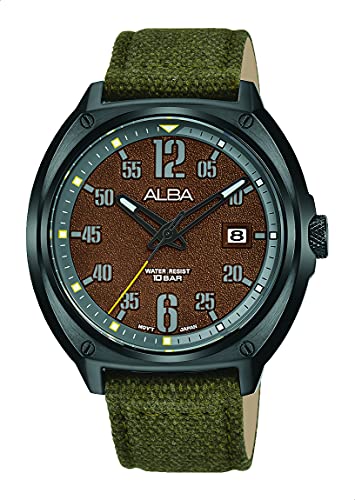 Alba - ساعة اكتيف بتصميم انالوج مع سوار من النايلون للرجال البا - زيتي واسود