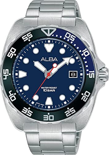 Alba - ساعة اكتيف بتصميم انالوج بعقارب مع مينا باللون الازرق وسوار ستانلس ستيل للرجال من البا - موديل AS9M91X1, أزرق