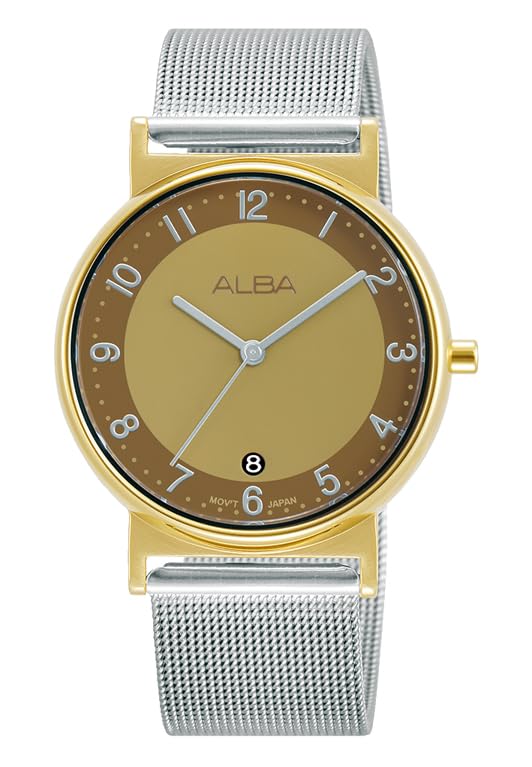 Alba - البا ساعة انالوج عصرية من الستانلس ستيل للنساء AG8M55X، اصفر بني/فضي