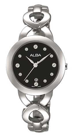 Alba - ساعة كاجوال للنساء من البا AH7G99X1، انالوج بعقارب، بمينا اسود، بسوار فضي