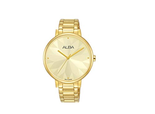 Alba - ساعة ستانلس ستيل انالوج بعقارب دائرية بميناء مطبوع اشكال هندسية للنساء من البا AH8540X1 - اصفر ذهبي