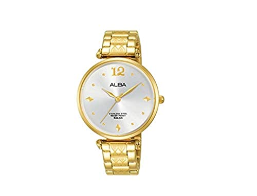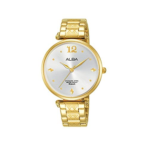 Alba - ساعة صن بريست ستانلس ستيل للنساء انالوج دائري بعقارب، سوار مطبوع ومينا من البا، موديل AH8554X1، لون ذهبي اصفر