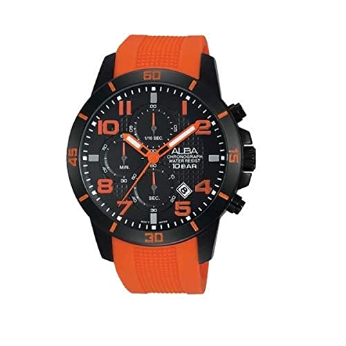 Alba - ساعة كاجوال رجالي AM3195X من البا - بسوار مطاطي انالوج بمينا أسود برتقالي