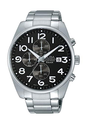 Alba - ساعة كاجوال البا AM3209X للرجال - بسوار معدني، انالوج، بمينا أسود