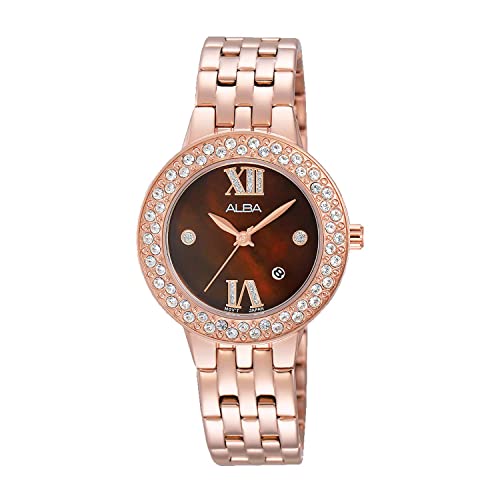 Alba - ساعة نسائية من البا، انالوج بعقارب، سوار ستانلس ستيل، AH7H34X، بمينا بنى