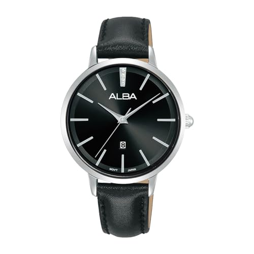 Alba - ساعة بسوار عصري من الجلد الطبيعي ومينا أسود للنساء البا AH7CD9X تناظري