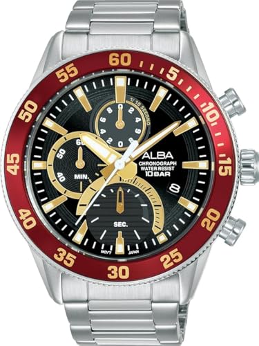 Alba - ساعة اكتيف من الفولاذ المقاوم للصدأ بمينا سوداء رجالي من البا، موديل AM3891X، تناظري