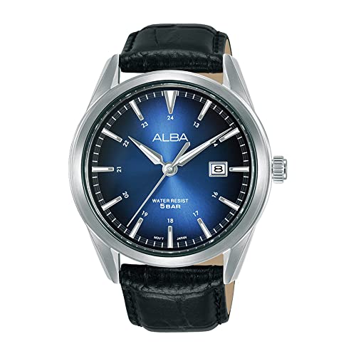 Alba - البا ساعة كوارتز للرجال من برستيج AS9N91X1 سوار بمينا أزرق بسوار أسود